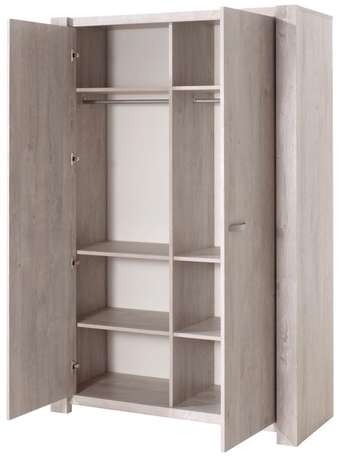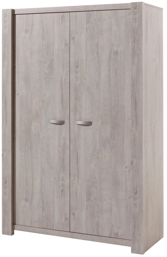 Deze kast heeft 2 openslaande deuren van grijs houtlook (ribbeck eik). De binnenkant bestaat uit een hanggedeelte en een aantal planken. 2-Deurskast Amalia is goed te combineren met de andere meubels uit deze collectie: een meegroei ledikant, nachtkastje en commode. Ook verkrijgbaar als 3-delige set.
