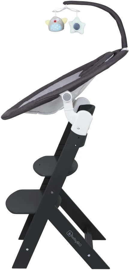 Daarnaast wordt de swing geleverd met een BabyGo Family kinderstoel. De swing is makkelijk op de kinderstoel te bevestigen met de adapters waardoor je je kleine hoger kan zetten om er zo beter bij te kunnen. Van deze kinderstoel is zowel de zitting als de voetensteun in 3 verschillende hoogtes te verstellen zodat er altijd een comfortabele positie voor je kindje te vinden is.