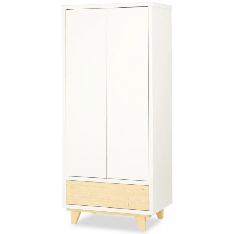 In de handige 2-deurskast heb je meer dan genoeg ruimte voor alle kleertjes en andere spulletjes van je kleintje! De kast heeft 2 deuren met een roede aan de ene kant en 2 planken (3 vakken) aan de andere kant. Ook heeft deze kast een grote lade waarin je bijvoorbeeld lakentjes en dekentjes kan opbergen. De deuren en de laden openen door het ‘Push to open’ systeem.