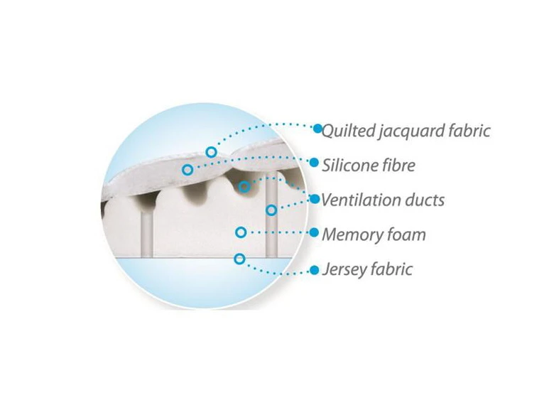 Het thermoplastisch schuim dat in het kussen zit verwerkt past zich aan de lichaamstemperatuur van jouw kleintje aan. Daarnaast is het kussen voorzien van twee soorten ventilatie wat ervoor zorgt dat overmatige transpiratie van je kindje wordt geminimaliseerd.