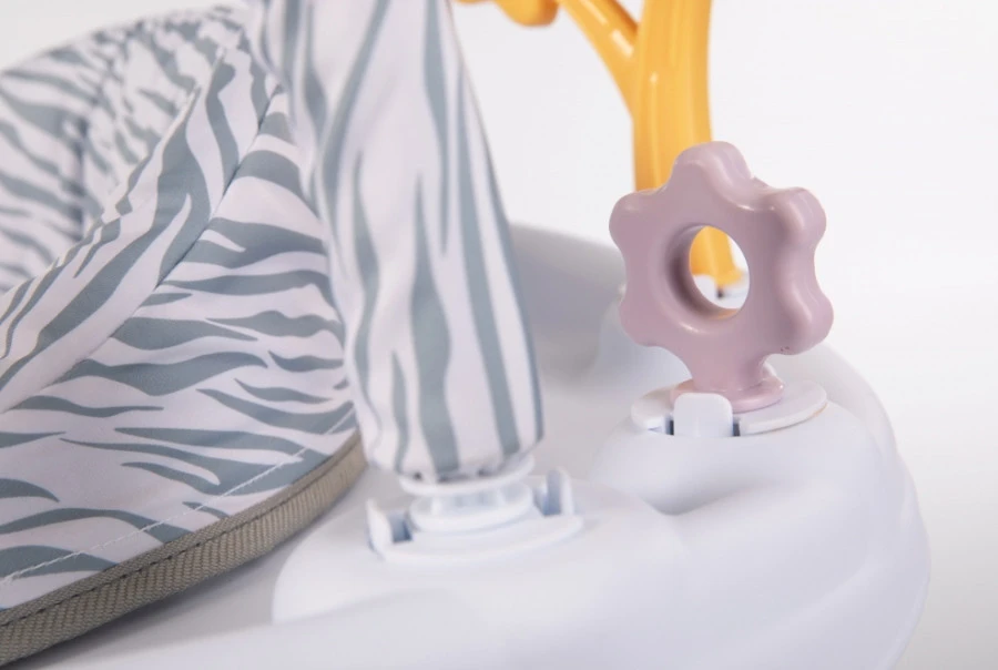 Het 360° draaibare activiteitenstation, geschikt vanaf een leeftijd van 6 maanden tot 11 kg, is voorzien van een comfortabel zitje met een gewatteerde rugleuning en kan op 3 hoogtes worden versteld. Naast dat de tafel licht en geluid bevat heeft het ook verschillende speelgoedjes, zoals bijvoorbeeld een spiegel, roterende bal met kralen, bijtring, een boog met hangend figuurtje en een plekje om een drinkfles neer te zetten.