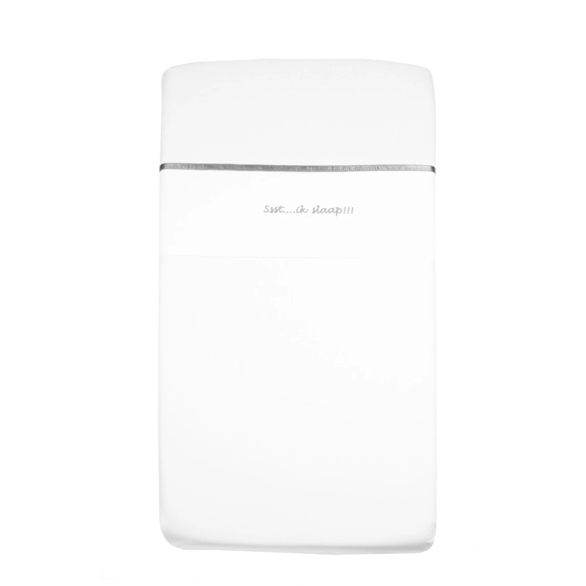 Je kleintje komt helemaal tot rust zodra hij/zij onder dit prachtige ledikantlaken van Briljant ligt. Dit lakentje is volledig wit van kleur met zandkleurige bies aan de bovenkant en de geborduurde tekst ‘Sttt… Ik Slaap!’ wat het lakentje leuk afmaakt!