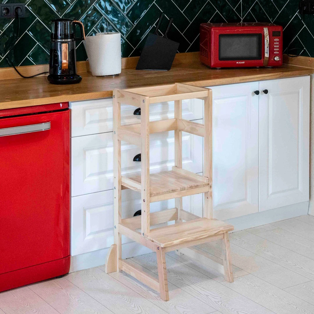 Met deze leertoren van Kukka kan jouw kindje nieuwe activiteiten ontdekken samen met jou! Zet de leertoren bij het aanrecht als keukenhulp en ga aan de slag om samen groenten en fruit te wassen, laat je kindje meekijken bij het koken of smeer samen zijn of haar boterhammetjes.