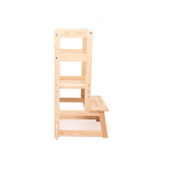 Je kleintje klimt makkelijk op het krukje en staat veilig op tussen de leuningen. Het tweede treetje van het krukje is te verstellen in 3 verschillende hoogtes. Door de leuningen en het anti-slip oppervlak staat je kleintje veel veiliger dan op een ‘normaal’ krukje of opstapje. Daarnaast zijn de pootjes voorzien van extra versteviging waardoor de toren erg stabiel staat. Vanuit hier kan hij of zij nieuwe activiteiten ontdekken en praktische vaardigheden opdoen. Dit ontdekken en het zelfstandig ontwikkelen van deze vaardigheden geeft je kleine een boost in zelfvertrouwen. Geschikt voor kindjes vanaf 18 maanden.