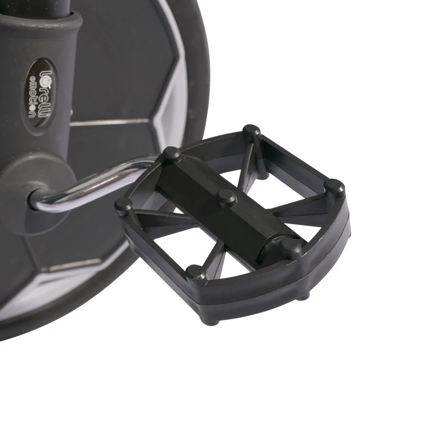 Aan de achterkant van de driewieler kun je makkelijk een duwstang (90-95cm) bevestigen waar je je kindje op de driewieler mee rond kunt duwen. Dit is erg leuk wanneer je graag wandelingen maakt en je kindje snel moe is of wanneer je kindje nog niet goed (zelfstandig) kan fietsen. De duwstok heeft twee standen en aan het handvat zit zelfs een bekerhouder! Wanneer je je kleine duwt met de duwstok, kan je kindje makkelijk zijn/haar voeten veilig op de voetensteun zetten, deze zit aan de onderkant van de driewieler en kun je in- en uitklappen. De stoel is 360º te draaien zodat je kindje met zijn/haar gezicht ook richting jou kan kijken.