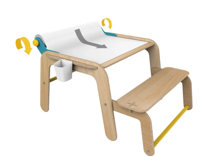 Vindt jouw kindje het ook zo leuk om de mooiste kunstwerken te tekenen? Of wil je samen met jouw kindje oefenen met schrijven of rekenen? Dan is dit tekentafeltje met bankje perfect geschikt voor je kindje. De tafel wordt geleverd met een rol tekenpapier die eenvoudig gemonteerd kan worden aan de achterkant van het tafeltje, hierdoor is het makkelijk voor jouw kindje om in een keer door te kunnen kleuren. Daarnaast zit er een pennenhouder bij, waardoor je kindje alles bij de hand heeft om de mooiste kunstwerken te maken.Â