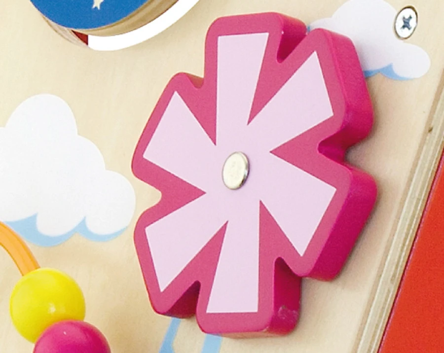 Op deze loopwagen zijn verschillende activiteiten te vinden die de motoriek van je kindje helpen ontwikkelen. De loopwagen bevat onder andere 2 vingerdoolhoven, een draaipuzzel, verschillende draaiende onderdelen en een kralenspiraal. Genoeg voor eindeloos speelplezier!