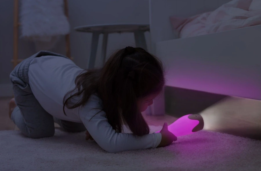Gina is ook te gebruiken als zaklamp, handig voor als je kindje de weg in het donker moet vinden of een boekje wil lezen. Als de zaklamp niet gebruikt wordt schakelt deze automatisch uit na 10 minuten.