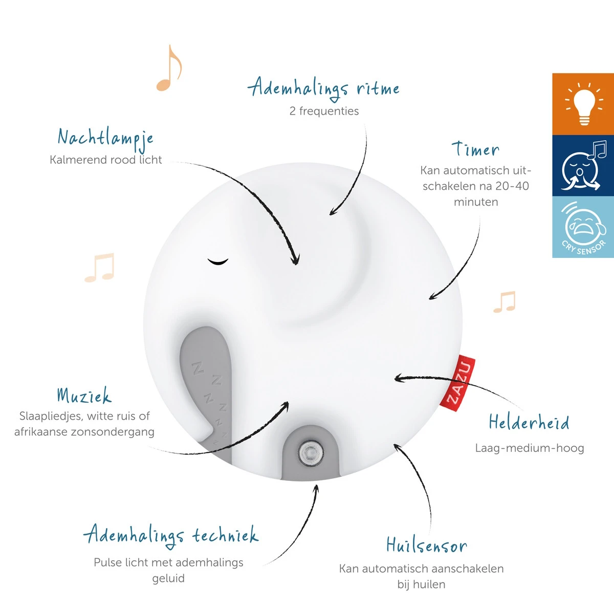 Wat een praktisch en lief nachtlampje van Zazu! Emmy de Olifant is een ademhalingslamp die op effectieve manier jouw kindje kan kalmeren waardoor hij of zij makkelijker in slaap valt.
