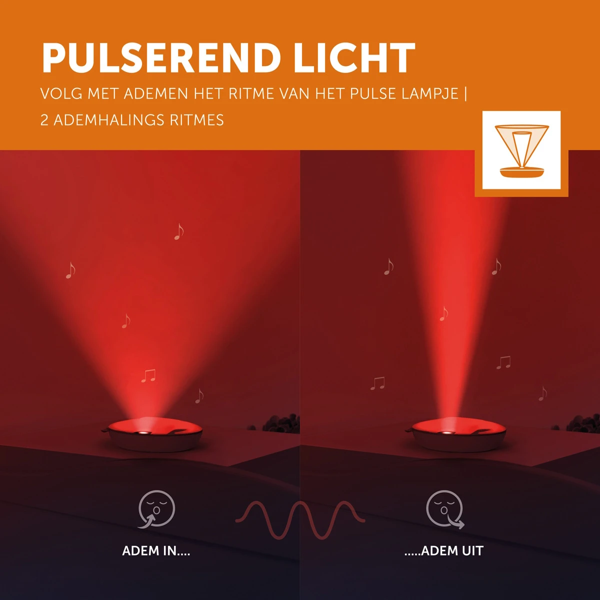 Na een drukke dag zit het hoofd van je kindje vaak vol impressies en indrukken waardoor in slaap vallen niet altijd vanzelfsprekend is. Het pulserende rode licht van Emmy stimuleert je kindje om op de maat mee te ademen en verstoort de nachtrust niet door geen gebruik te maken van blauw licht. Zo kan jouw kindje zijn of haar gedachten loslaten en makkelijker in slaap vallen.